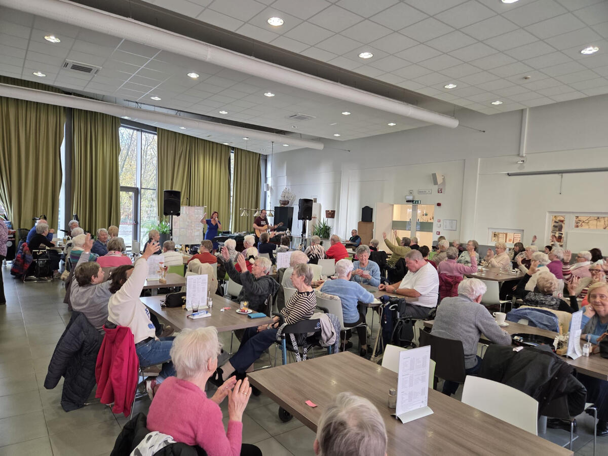 De muzikale omlijsting bracht de sfeer echt op gang. Linda en Glenn zorgden voor een prachtig optreden met een repertoire dat vol herkenbare, vaak Antwerpse liedjes zat. Al na enkele noten klapte het publiek mee, en niet veel later zong een groot deel van de aanwezigen uit volle borst mee: een muzikale reis vol nostalgie, plezier en echte verbondenheid onder de senioren.