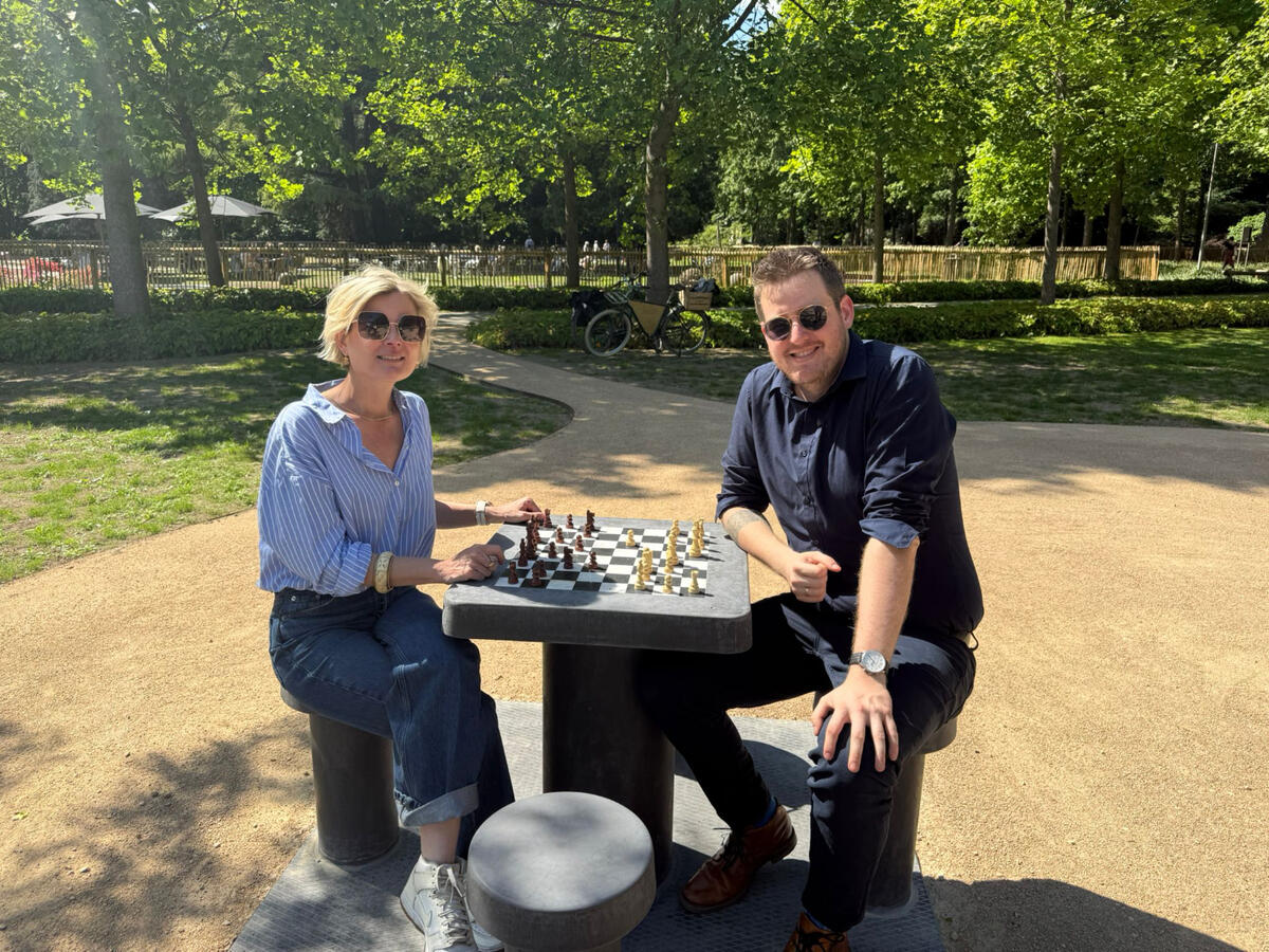 Een schaakhoek als deze geeft extra leven aan het park. Jong, oud, toevallige passant of fervente schaker: hier komt iedereen samen. Dat is precies wat publieke ruimte moet doen – mensen verbinden.